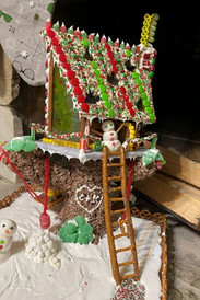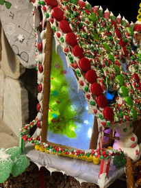 This Alpine Gingerbread House has been decorated by a few gingerbread designers, all who brought their own design flair!